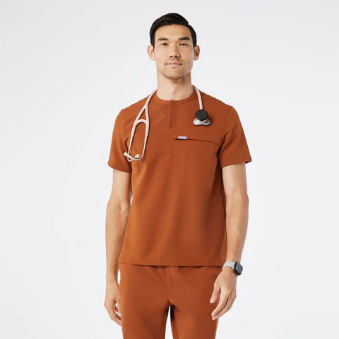 Bestex Personalizado Clássico Fit Homens Scrubs Conjuntos Uniformes Médico Bestex Esfrega Calças Henley Abertura Escondida Com Gabinete Snap